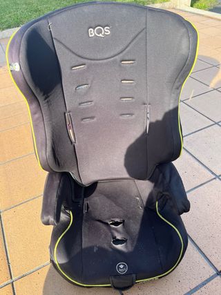 Silla de coche BQS para niños, apta para los grupos I, II y III. Diseñada para acompañar el crecimiento del niño. - Tapicería negra con detalles en verde lima. - Reposacabezas ajustable. - Acolchado para mayor comodidad. -Con isofix Usada pero útil, la usábamos para un segundo coche.