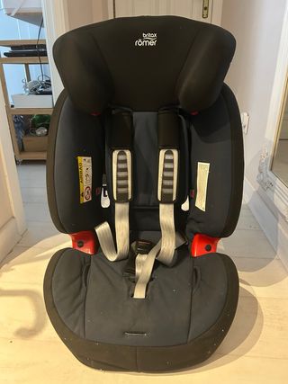 Silla de coche Britax Römer en color gris. Diseñada para la seguridad y comodidad. Está casi como nueva. - Reposacabezas ajustable. - Funda extraíble y lavable. - Sistema de protección lateral. - Isofix. - Sistema amortiguación en cinturón de seguridad.