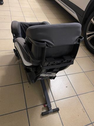 Silla de coche de la marca Jané, modelo Gravity. Tapicería en tonos grises y negros, con sistema de arnés de 5 puntos y reposacabezas ajustable. Instalación con isofix+pata, el sistema más seguro. Cumple normativa i-Size, rotativa 360º, que facilita la colocación del niño en la silla. Se puede colocar en ambos sentidos de la marcha. Está usada pero es completamente funcional