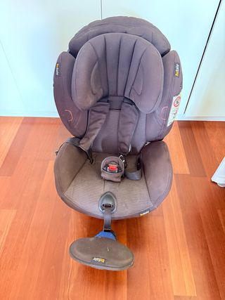 Silla de coche para bebé con diseño giratorio. - Color marrón y gris. - Incluye etiqueta de airbag.