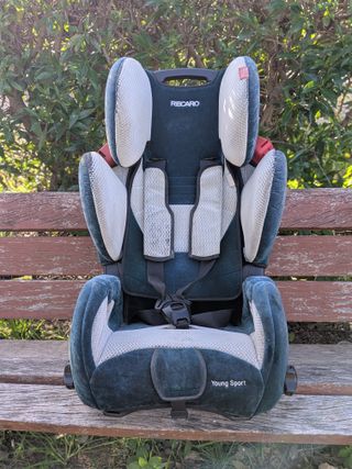 Silla de coche de la marca alemana Recaro, en color azul oscuro y gris. - Tapicería acolchada. - Sistema de arnés de 5 puntos. - Reposacabezas ajustable. - Reductor para bebés, así que se puede usar desde el principio - Usada pero completamente funcional