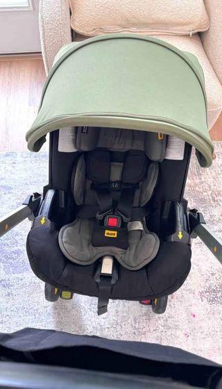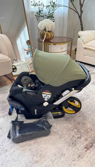 Pratico seggiolino auto che si trasforma in passeggino. - Colore verde e nero. - Capottina parasole inclusa.