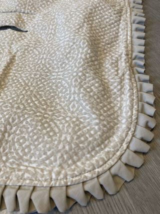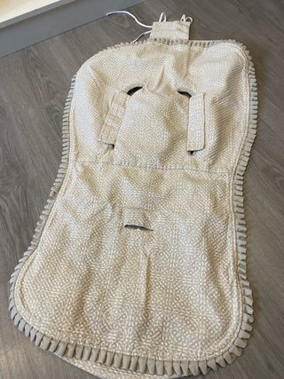 Saquito universal para silla de coche o carro de bebé. Con un bonito estampado y detalles de volantes. - Estampado en tonos beige y blanco. - Ribete de volantes en todo el contorno. - Aberturas para arnés de seguridad.