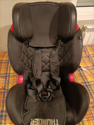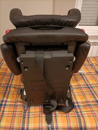 Silla de coche grupo I/II/III. Cuenta con isofix y anclaje a parte trasera del coche. Usada como segunda silla.