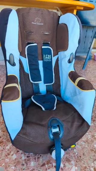 Silla de auto Bebe Confort Grupo 1, con sistema Isofix. Para niños de 9 a 18 kg. - Tapicería marrón y azul claro. - Cinturones de seguridad de 5 puntos. - Reposacabezas ajustable en los laterales - Reclinable - Cinturon ajustable en tres alturas - Desenfundable