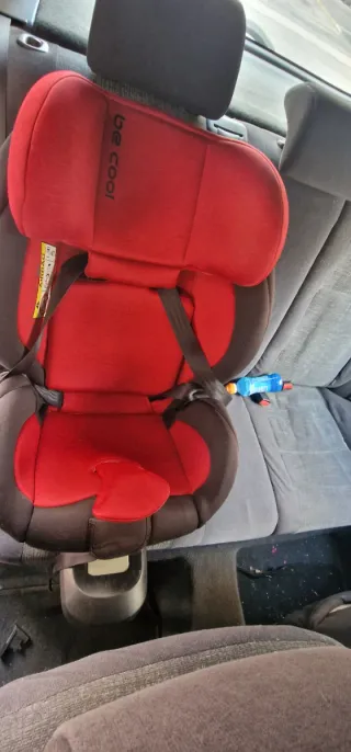 Silla de coche de la marca Be Cool en color rojo. Diseñada para la seguridad y comodidad de los más pequeños. - Tapicería acolchada. - Sistema de arnés de seguridad. - Base de sujeción.