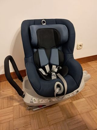 Silla de coche Britax Römer en buen estado, apta para niños de 0 a 18 kg. - Color azul marino y gris. - Incluye arnés de seguridad de 5 puntos. - Base giratoria para facilitar la instalación. - No envio
