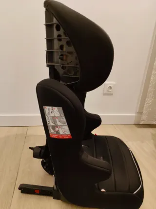 Es de color negro y rojo. Sistema de protección contra impactos laterales integrado. Reposa cabezas reclinable. Diseño ergonómico, acolchado y muy confortable. Es divisible se puede usar solo el alzado.Semi universal 15/36 kg. Las fundas pueden extraerse muy fácilmente para lavar. En la última foto muestro como el asiento tiene una pequeña falta. HAGO ENVIOS