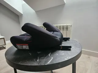Silla de coche con un diseño moderno en color negro y detalles en rojo. Es cómoda y segura. - Tapicería acolchada. - Reposacabezas ajustable. - Sistema de anclaje Isofix. En las fotos hay una segunda silla sin isofix, en condiciones aceptables. Que viene bien para un segundo coche. Va de regalo al comprar la primera.