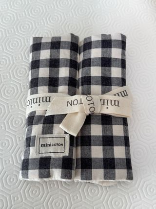 Preciosos protectores de tirantes de la marca Minicoton. Ideales para proteger los hombros del pequeñ@ en sillas de paseo, sillas de coche. Son universales. - Están hechos de tela de algodón orgánico 100%. - Son reversibles (por una cara la tela es de cuadros negro y crudo, la otra cara crudo liso). - Se venden en pack de 2 protectores (la pareja) que necesitas para una silla. Pero tenemos 2 packs a la venta (para dos sillas). Nuevos. En perfecto estado, sin uso. Precio compra en Minicoton, 20€ pack.
