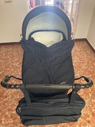 Clásico carro de bebé de la marca Arrue, ideal para paseos. - Diseño elegante y atemporal. - Capazo espacioso y confortable. - Ruedas grandes para un paseo suave. - Con silla de paseo incluida