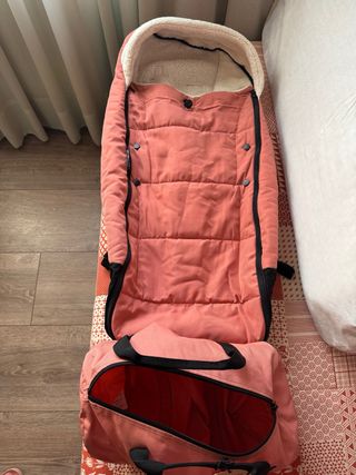 En perfecto estado de conservación. Incluye colchón, sábana negra ajustable, capota, cubrepiés y adaptadores. Compatible con la estructura del carrito Babyzen Yoyo 1, Yoyo 2 y con el del carrito Stokke Yoyo 3. Se puede recoger personalmente en Barcelona, zona Plaza Molina. También se hacen envíos. Precio original 250€