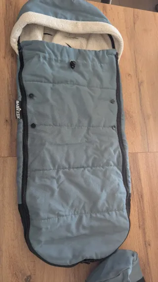 Saco de invierno para silla de paseo Babyzen Yoyo2. Mantiene al bebé abrigado y cómodo. - Color verde azulado - Interior forrado de borreguito. - Capucha ajustable con cordón. - Cremallera frontal completa. - Acolchado. - Logo de la marca visible.