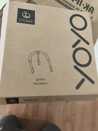 Mango de repuesto para carrito Babyzen YoYo. - Color negro. - Material: cuero sintético y metal. - Con marcas de uso