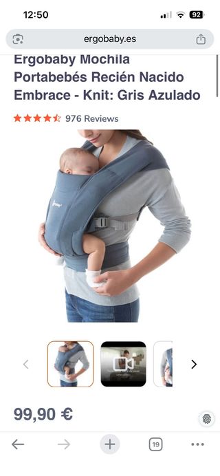 Vendo mochila portabebés Ergobaby Embrace en color gris. Es el modelo ideal para recién nacidos (3,2 kg a 11,3 kg) porque combina la suavidad de un fular con la facilidad de una mochila. Referencia web original en 2a foto 100€ Estado: muy buen estado, tejido impecable Características: Ergonómica (posición en M), tejido de punto suave, muy fácil de ajustar con solo 3 clics. Relacionados Portabebés, porteo ergonómico, fular elástico, babybjorn, regalo bebé, recién nacido, silla paseo, portear, mochila evolutiva, stokke, bugaboo, yoyo babyzen, rockit, faba, cuna colecho, cuna, ropa bebe.