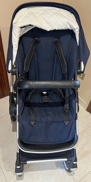 Carro de bebé Bugaboo Buffalo en color azul marino y beige. Incluye capazo y silla. - Chasis negro. - Ruedas todoterreno. - Capota extensible. - Burbuja de lluvia.