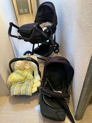 Carrito de bebé de la marca Concord en color negro. Con capazo, silla de paseo, cuco... Soporte con isofix para cuco. Muy poco uso. Precio negociable