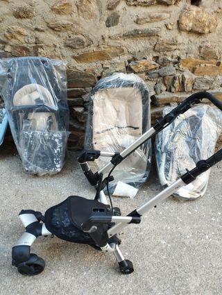 Permite sujetarlo a la silla de paseo Neo para que un segundo niño pueda ir acoplado a la misma. Tiene algunas marcas en la superficie antideslizante pero funciona perfectamente.