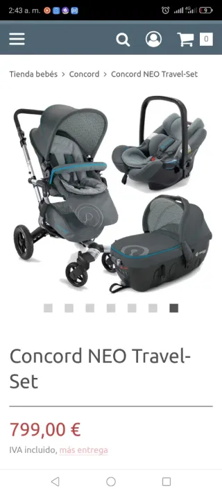 Se vende conjunto del carro Concord Neo, carro de bebe, capazo, y silla de coche. Y la funda para la lluvia. Interesados hazme una oferta
