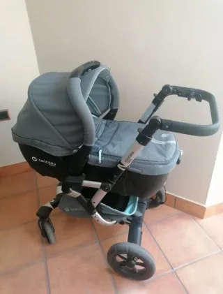 NO NEGOCIABLE. Conjunto carro paseo Concord Neo. Consta de chasis con: Maxi cosi, adaptador maxi cosi con Isofix para coche, capazo, silla de paseo, plastico protector lluvia para maxi-cosi y silla. Está usado pero bien conservado. Único desperfecto, una sujeción de la barra frontal de la silla de paseo. Está arreglada con cinta y funciona perfectamente. Recogida en mano en Hortaleza, zona Cárcavas.