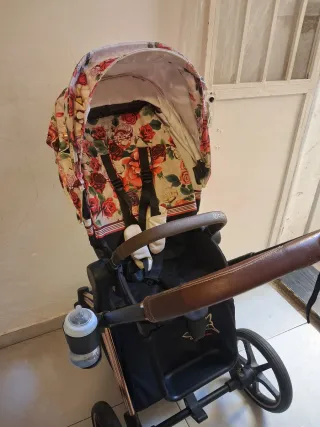 -Chasis priam Rosa gold. -Capazo Priam Lux Gris. -Silleta de paseo cybex priam spring blossom light mas saco a juego. -Silleta de coche y chasis CarryCybex Cloud Q conSensorSafe. Todo incluye plásticos protectores de lluvia. Se regala sombrilla y protectores solares.