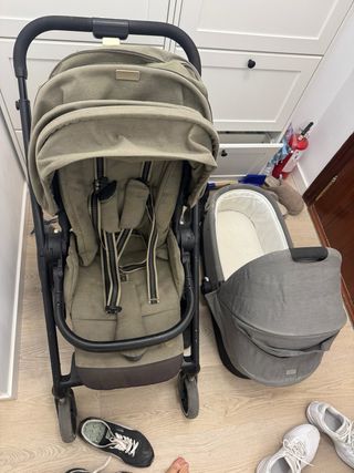Preciosa silla de paseo Mast M4x con capazo a juego, en perfecto estado. Ideal para pasear a tu bebé con comodidad y estilo. - Incluye silla de paseo, capazo, adaptadores y silla auto cybex compatible. - Diseño ligero y fácil de plegar. - Tejido de color gris verdoso.