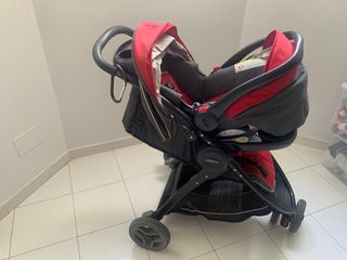 Carro bebe de la marca Graco (no1 en ventas en EEUU). Con amplio espacio de almacenamiento en la parte baja y con "cup-holders" para los vasos de bebida de los padres y del niño/a. Viene además con su sillita de coche (con su base) que se puede utilizar hasta los 2 o 3 años. Muy practica si tienes que coger taxi, así el bebe está bien protegido durante el trayecto.