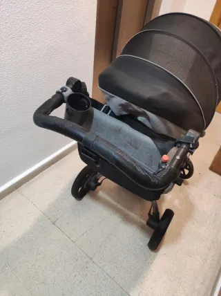 Beat STOKKE el capazo que se cubre completamente mosquitera para el capazo saco de marca Jane la silla se puede poner hacia delante y atrás, también se tumba y la capota cubre prácticamente toda la silla, cesta de gran tamaño bolsa cambiador STOKKE que se cuelga, y se puede hacer mochila. porta vasos para bebidas todo desenfundable y lavable tejido de protección solar el asidero de la silla tiene diferentes posiciones. el capazo es totalmente desmontable para guardarlo fácilmente amortiguación en ruedas estructura se prieta y desmonta fácil todo está en perfecto estado Madrid