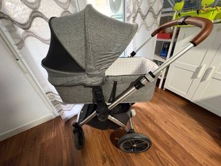 Carro Jane Muum en color gris. Se vende tal cual. El manillar está pelado, hay fundas. - Chasis ligero y plegable. - Capazo espacioso. - Silla de paseo reversible. - Ruedas todoterreno.