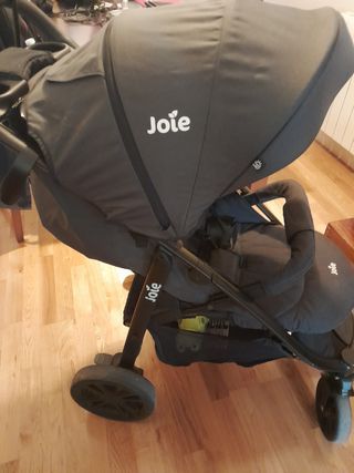 Preciosa silla de paseo Joie de color gris, en buen estado. - Fácil de manejar e ideal para caminos por sus ruedas. Manillar ajustable a altura. - Asiento ajustable con modo en el sentido de la marcha o a contramarcha. - El arnés de 5 puntos SoftTouch se puede ajustar en 3 alturas para adaptarse a las etapas de crecimiento de los niños. - Reclinado en plano y reposapies ajustable. - Capota con protección UPF 50+ y resistente al agua con visera parasol. Se extiende simplemente con una cremallera. - Espaciosa cesta de almacenamiento, accesible desde la parte delantera y trasera. Precio negociable.