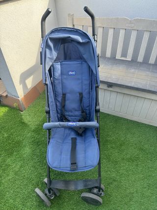 Silla de paseo ligera Chicco modelo Goody Plus, ideal para desplazamientos cómodos. Se pliega compacta lo que permite llevarla en cabina, nosotros hemos volado con Vueling. El asiento se reclina quedando casi plano y pueden dormir la siesta en el carrito. Incluyo plástico de lluvia original. El manillar esta desgastado pero venden fundas compatibles (ver las fotos). - Diseño moderno y funcional. - Capota extensible. - Asiento acolchado. - Plegado compacto.