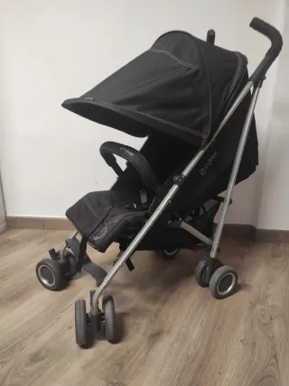 Silla de paseo Cybex en color negro. Perfecta para llevar a los más pequeños cómodamente. - Diseño ligero y plegable. - Capota con ventana de ventilación. - Cesta de almacenamiento inferior. - Arnés de seguridad. La vendo con plástico de lluvia