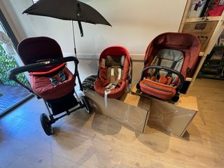 Vendo cochecito Cybex Mios en perfecto estado, con un diseño elegante y práctico. - Chasis metalizado - Capazo rojo para recién nacido con funda del colchón extra incluida - Silla negra: reversible y completamente reclinable - Arnés de seguridad de 5 puntos - Fácil de plegar y muy compacto, ideal para transportar - Ligero y fácil de manejar, perfecto para paseos urbanos Puedes preguntarme cualquier duda y se puede ver sin compromiso.