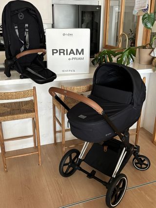 Cochecito Cybex Priam e-Priam en color negro, con el asiento. - Incluye el Seat Pack. - Diseño elegante y moderno. - Capazo espacioso y cómodo. ¡Oportunidad! Vendo cochecito Cybex Priam en estado excelente, prácticamente reestreno, comprado en diciembre 2023. Es el modelo de alta gama de la marca, conocido por su diseño elegante, su manejo suave y su máxima comodidad para el bebé. El pack es súper completo e incluye: Chasis Priam: Ligero, robusto y con plegado con una sola mano color platinum. Capazo (Lux Carry Cot): Muy espacioso, con colchón transpirable. Silla de paseo (Seat Pack): Reversible (mirando a los padres o al mund