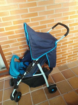 Se vende silla de paseo para niño, ligera y fácil de plegar. 👶🏼 - Plegado compacto para facilitar el transporte y almacenamiento. 💪🏼 - Estructura de metal resistente. - Tapicería en tonos azul y verde. - Ruedas de goma. 🛞