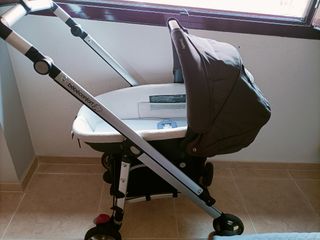 Sistema modular que permite intercambiar capazo, maxicosi o silla de paseo. Chasis de aluminio de plegado compacto. Silla reversible. Respaldo reclinable hasta llegar a la horizontal. Capazo y maxicosi homologados para llevar en el coche. Ruedas delanteras giratorias y con bloqueo. Freno trasero centralizado. Capota regulable y cesta. burbuja de lluvia. Desenfundable y lavable a maquina. Perfecto estado. Vendo por falta de uso