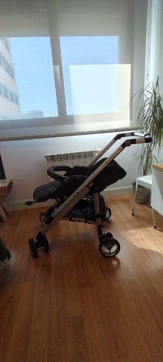 Sistema modular que permite intercambiar maxicosi o silla de paseo. Cierre tipo paraguas. Silla con respaldo y reposapiés reclinables hasta llegar a horizontal. Freno trasero para las 2 ruedas.Capota regulable, fundas desenfundables y lavables a máquina. Esta lavado, desinfectado y puesta a punto por la tienda BuBuclean.