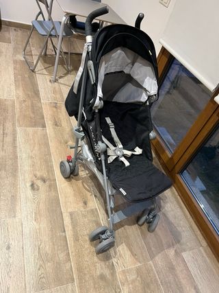 Muy cómodo de llevar, se pliega tipo paraguas en segundos y ocupa muy poco espacio. Ideal para vacaciones, coche o avión. ✔ Marca de calidad Maclaren ✔ Muy ligero y fácil de manejar ✔ Plegado compacto (tipo paraguas) ✔ Capota para sol y lluvia ✔ Cinturones de seguridad ✔ Ruedas en buen estado ✔ Limpio y listo para usar Está en buen estado general, con pequeñas marcas normales de uso (ver fotos). Todo funciona perfectamente. - Color gris. - Capota con ventana. - Cesta de almacenamiento inferior. - Ruedas dobles delanteras giratorias. Perfecto como segundo carrito o para viajar.