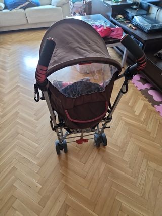 Silla de paseo en buen estado. Marrón y rosa. Incluida funda de verano y protector de lluvia.