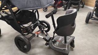Patinete universal para acoplar a la silla de paseo de tu bebé. Permite que un niño mayor viaje de pie. - Diseño con plataforma. - Ruedas para facilitar el movimiento. - Correas de sujeción ajustables. - Tiene luces cuado se pone en movimiento