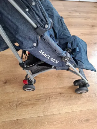 Silla de paseo Maclaren tela vaquera. - Empuñaduras perfectas - Capota con protección solar con mas apertura. - Asiento reclinable. -Plástico de lluvia incluido - Plegable fácil con tira colgar
