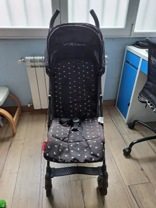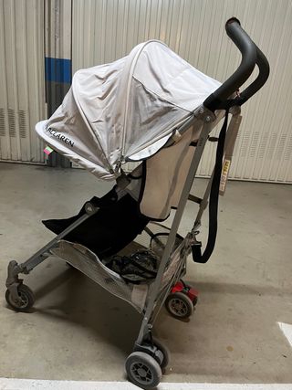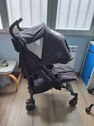 Cochecito / Silla de paseo Maclaren plegable Cochecito Maclaren usado, con señales normales de uso, pero totalmente funcional. Perfecto como segunda silla, para viajes o para dejar en casa de los abuelos. ✅ Plegable y ligero, fácil de transportar y guardar ✅ Respaldo reclinable ✅ Capota incluida ✅ Incluye capote de lluvia original ✅ Ruedas y frenos en buen estado 📌 Presenta desgaste estético propio del uso (ver fotos), pero funciona correctamente. 📍 Entrega en mano o envío por Wallapop 💬 Cualquier duda, ¡pregúntame sin compromiso!