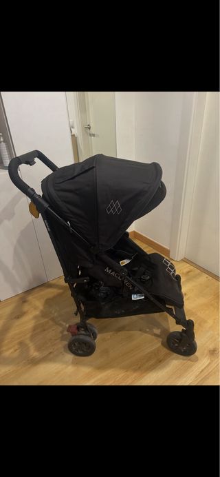 Silla de paseo gemelar Maclaren Twin Techno color negro. En perfecto estado pues se ha usado muy poquito con hermanos de distinta edad. Los asientos son reclinables en 4 posiciones distintas. Valida para peques desde recién nacidos hasta los 15kg. Comoda de manejar, cabe por casi cualquier puerta y tiene plegado fácil tipo paraguas. Incluye burbuja de lluvia original. Costo todo nuevo en el corte inglés 495€. Posibilidad de añadir los sacos de invierno. Hecha un vistazo en mi perfil 😉