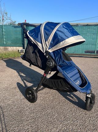 Baby Jogger CITY MINI GT Silla todo terreno. Incluye protector lluvia. Características Principales: * Asiento firme y acolchado reclinable. * Amplia capota de tres posiciones con dos ventanas y protección solar UPF 50+. * Ruedas macizas de 8,5" desmontaje rápido, la delantera con 2 posiciones, giratoria o fija, y suspensión. * Freno parking de mano. * Manillar regulable en altura. * Amplia cesta inferior y en el respaldo. * Arnés de cinco puntos ajustable * 28 kg de capacidad. * Cierre de seguridad automático y plegado fácil. Manejo y plegado con una sola mano tienes señales de uso. detallo fotografias.