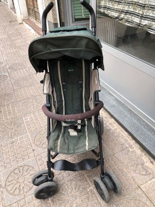 Silla ligera para niños de hasta 18kg. Negra y marrón. Freno en rueda trasera derecha que funciona perfectamente y ruedas delanteras con posibilidad de fijas o móviles. Capota grande, con expansión para tapar más y protección total UVA y UVB. Burbuja de lluvia en buen estado incluida. 4 posiciones de reclinado con una sola mano. Plegado compacto y asa de transporte. Cesta inferior sin roturas. Todos los mecanismos funcionan a la perfección y rueda fenomenal. Buen estado, solo le falta la goma de uno de los puños, pero puede arreglarse con cinta de manillar de bici o similar. Incluyo manual de usuario.
