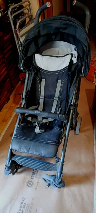 Es fácil de manejar y transportar. Tiene asa estilo maleta para su transporte, plegado fácil y compacto. La capota es extensible, con rejilla de ventilación y el respaldo reclinable hasta quedar completamente horizontal junto con el reposapies. La cesta no parece muy grande pero aguanta peso. Usado cinco días. La etiqueta trasera está marcada con permanente con el nombre de su actual dueña que ya no lo usa.