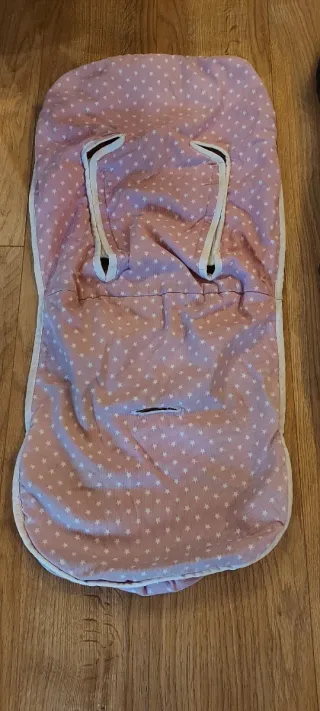 Saco para silla de bebé con un divertido estampado de lunares en blanco, rosa y verde. Es reversible, con un lado estampado y otro liso en color rosa. - Estampado de lunares. - Reverso liso rosa. - Acolchado.