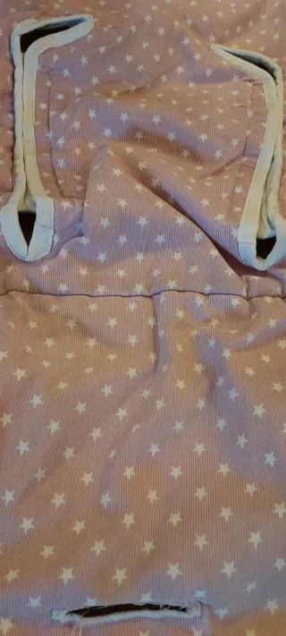 Funda + saco universal para silla de paseo y coche del grupo O. Tiene el parasol que va enganchado en el asa. Marca Rosy fuentes precio original 110 euros. El embozo de la funda es reversible (verde o blanco. Los puntitos de la funda van bordados. Es muy artesanal.