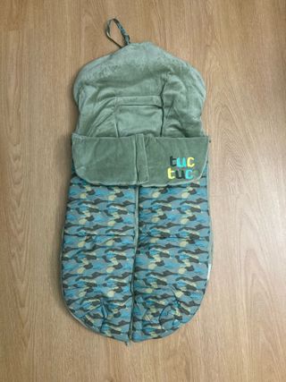Saco de silla de paseo Tuc Tuc con estampado de camuflaje. - Diseño reversible. - Tejido exterior de camuflaje. - Interior suave y acolchado. Saco de paseo completamente adaptable a cualquier silla ligera de paseo. Dispone de cremallera lateral para facilitar la apertura y colocación del bebé. Ideal para proteger al bebé del frío y de las molestias de la calle.