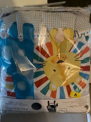 Saco para carro de bebé de la marca Interbaby con un divertido diseño de león. - Diseño reversible. - Impermeable. - Adaptable a cualquier tipo de carro.